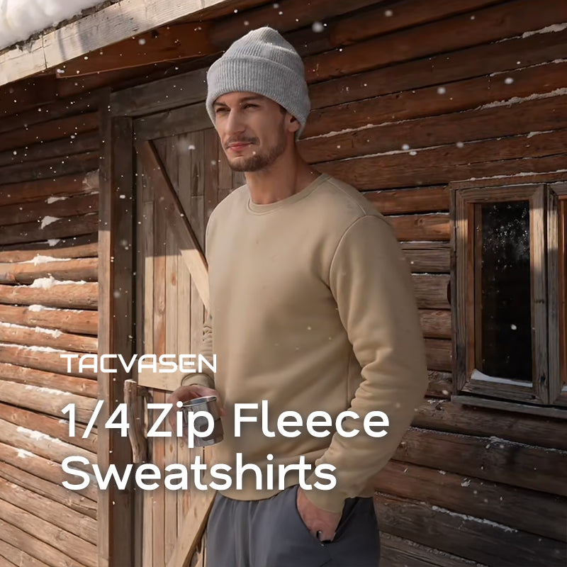 TACVASEN Khaki Men's Sherpa Lined Sweatshirt Warm Heavyweight Fleece Pullover
