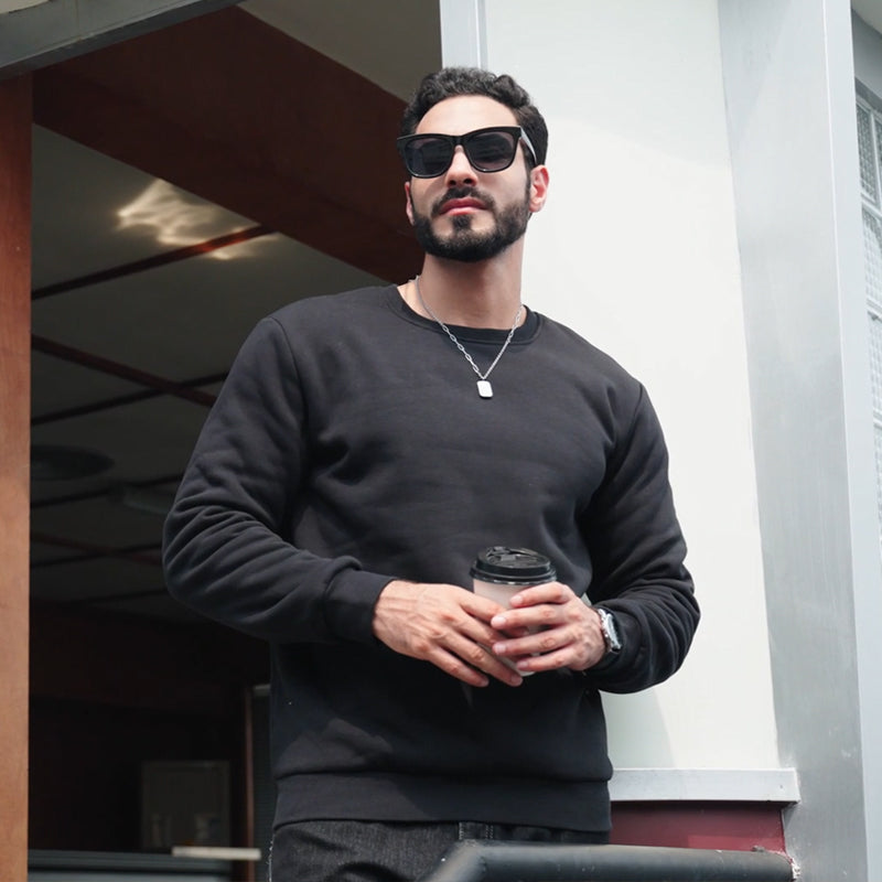 TACVASEN Black Men's Sherpa Lined Sweatshirt Warm Heavyweight Fleece Pullover