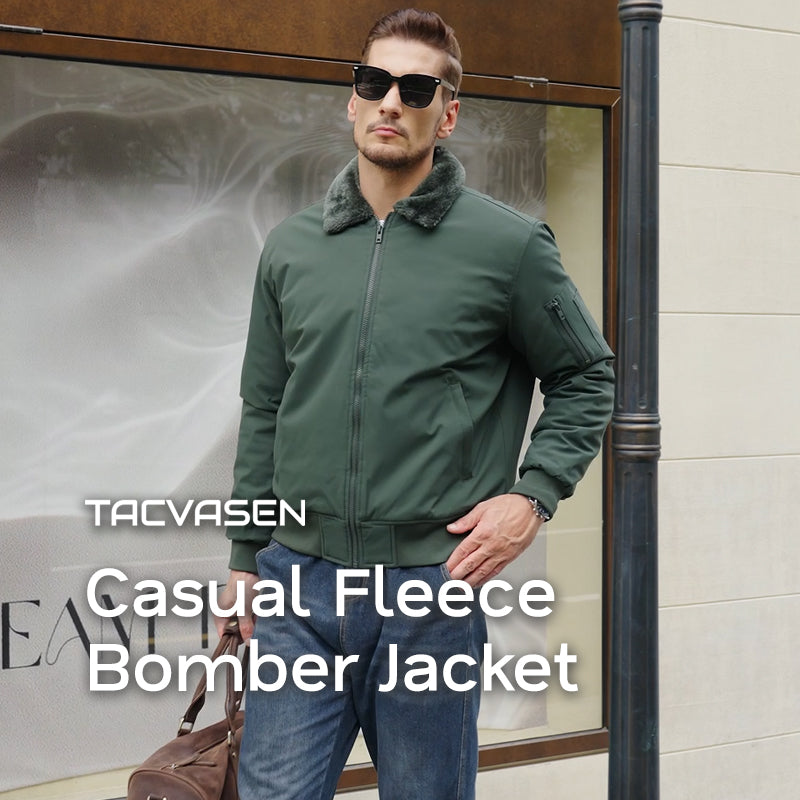 Men's Casual Fleece Bomber Jacket with Fur - LT25M1438