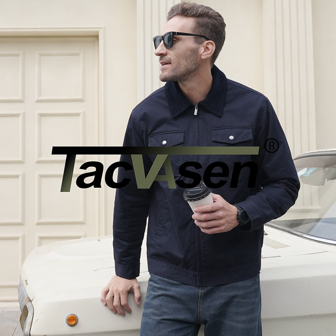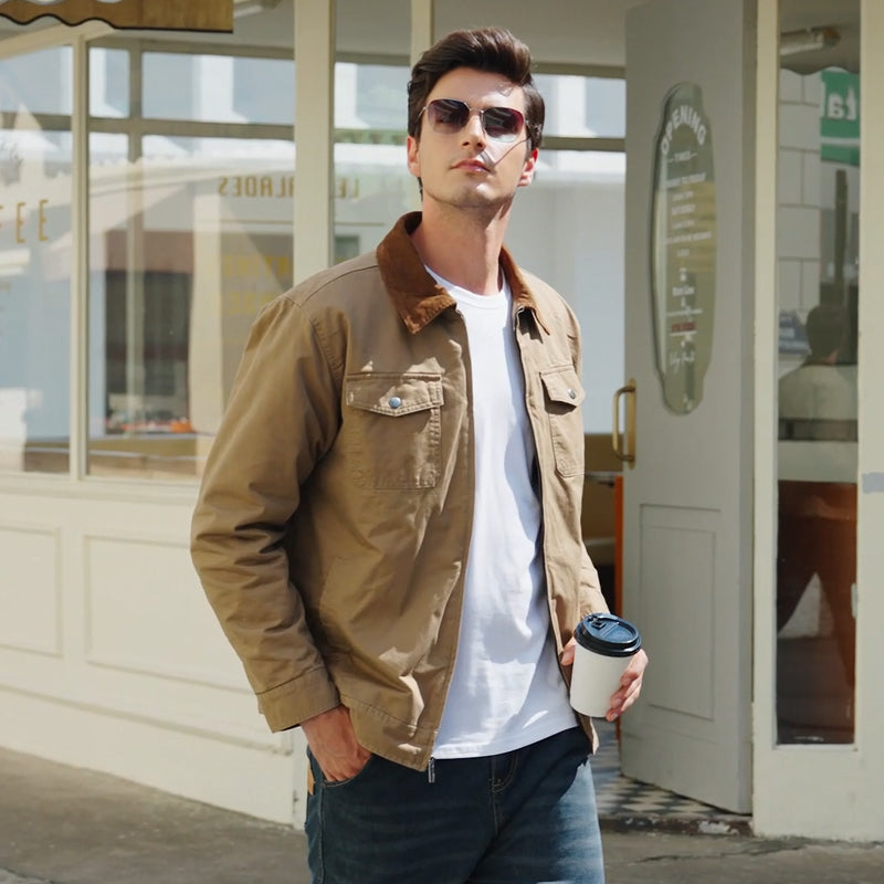 - Design: Zipper-front closure with corduroy spread collar and zipper placket, combining utility with casual refinement.