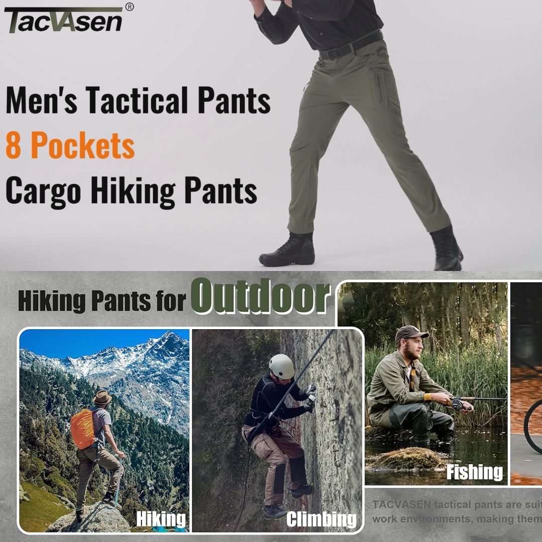 Men's Quick Dry Water Resistant 8 Pockets Cargo Hiking Pants